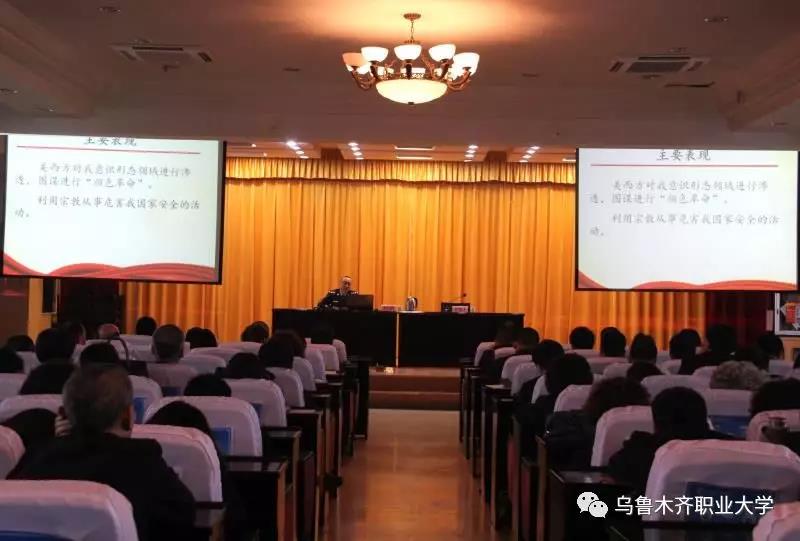 4月17日,学校邀请乌鲁木齐市国家安全局刘昕警官在幸福路校区学术交流中心为广大师生作题为《共筑反间防谍钢铁长城》的安全知识讲座。学校领导班子成员、各族师生共341人参加了此次活动。讲座由学校党委委员、宣传部长张冠华主持。