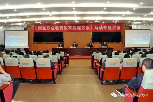 此次报告会是我校学习贯彻《国职业教育改革实施方案》的重要举措,也是发挥学校自治区第三产业(现代服务业)职教园区理事长单位和乌鲁木齐职教集团副理事长单位作用、组织园区和集团单位进行一次国家职业教育政策的集体学习,有利于全市职业院校更加全面深刻地理解和把握《国家职业教育改革实施方案》的丰富内涵,结合自身实际落细落实方案精神,深化产教融合、校企合作,培养留得住、用得上、干得好的技术技能型人才,更好地服务首府经济社会发展。