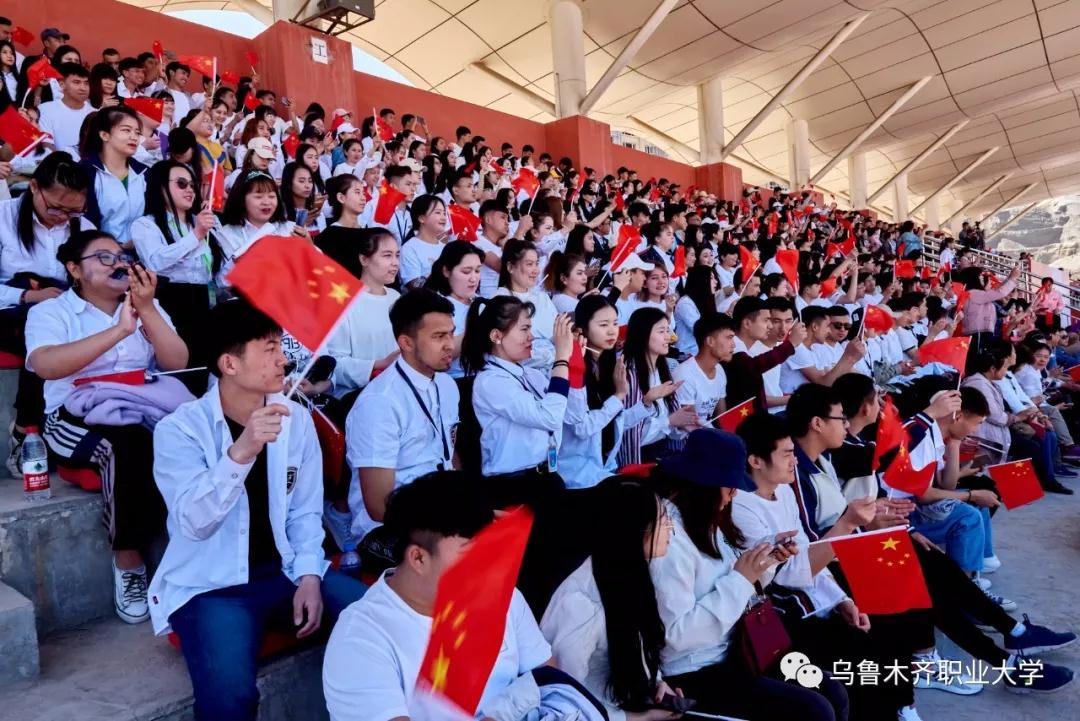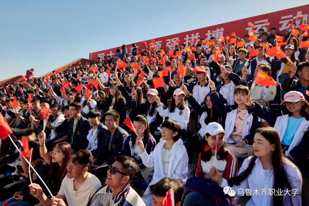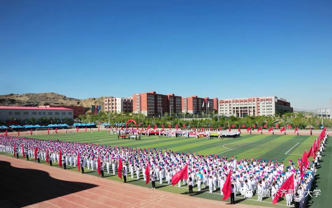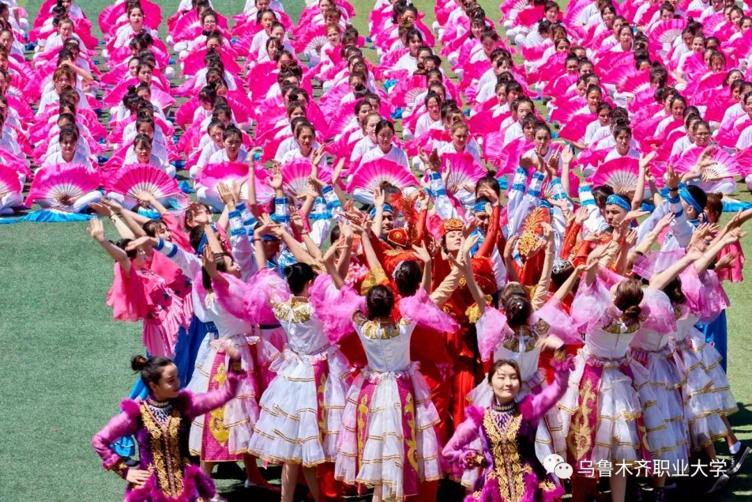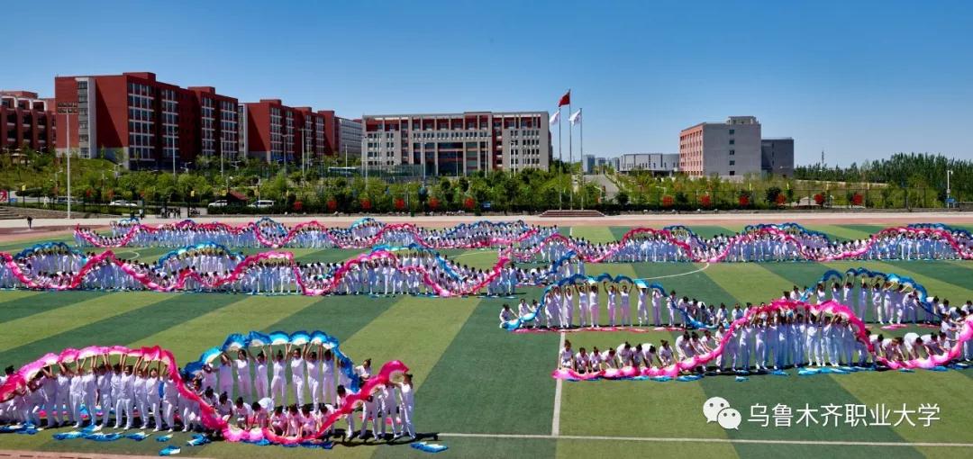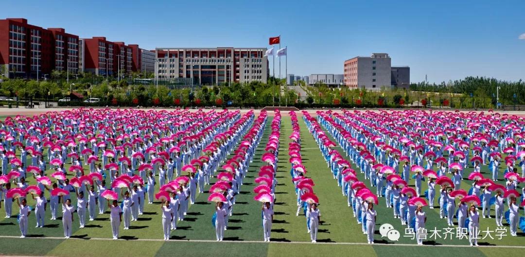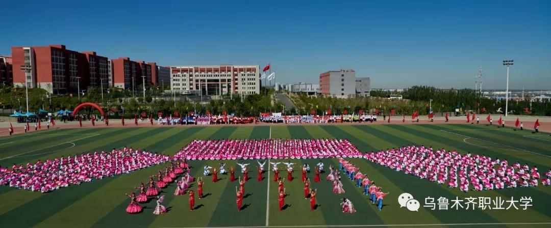 在各族师生兴奋的欢呼声中,学校党委书记李长江同志宣布乌鲁木齐职业大学第十六届田径运动会开幕,充满激情活力的大型团体操演出呈现在观众面前。