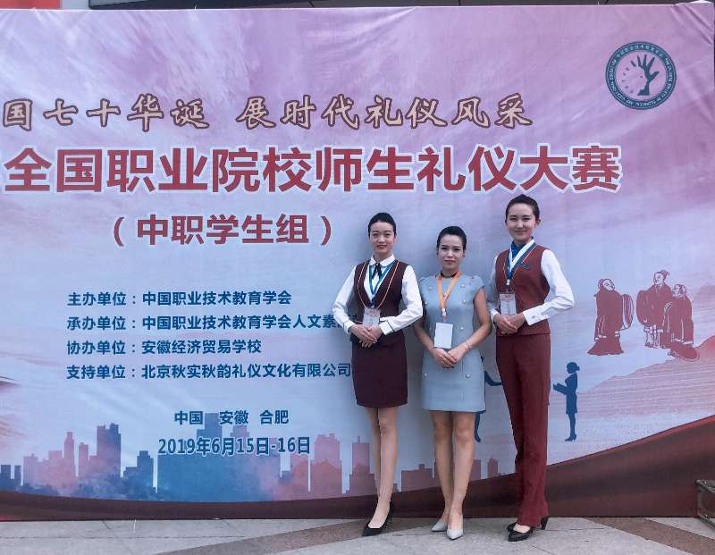 6月16日,2019年全国职业院校师生礼仪大赛(中职组)比赛在安徽经济贸易学校顺利落幕,在职业礼仪仪态展示单项赛中,中职学院航空服务1704班迪丽娜尔·叶尔兰同学、酒店管理1709班马娅丽同学分获一等奖、三等奖,在演讲故事单项赛中两位同学荣获二等奖。马澜、沙依白尔·沙吾尔荣获“优秀指导老师”荣誉称号。