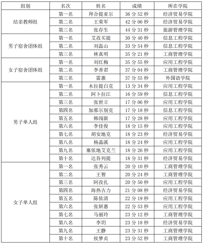 整场比赛历时近3个小时,在傍晚的清凉微雨中、在师生的欢声笑语中结束。参赛者们纷纷表示,这次比赛收获颇多,将会成为大家心中珍藏的一份美好回忆。赛后,学校对比赛成绩予以公示,并根据各组比赛名次对优胜者提供相应奖品。
