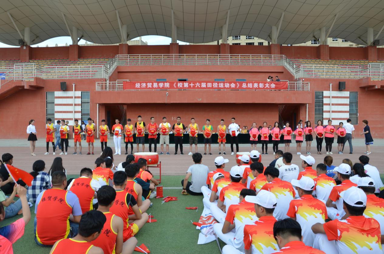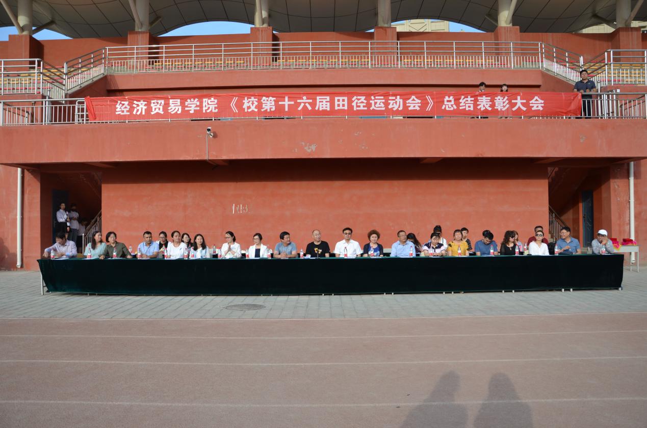 6月19日下午,我校经济贸易学院在新校区足球场举行第十六届田径运动会表彰大会,表彰激励先进,增强学院集体凝聚力。学校党委委员、副校长张新强,经济贸易学院领导、相关处室领导及学院全体师生参加表彰大会。
