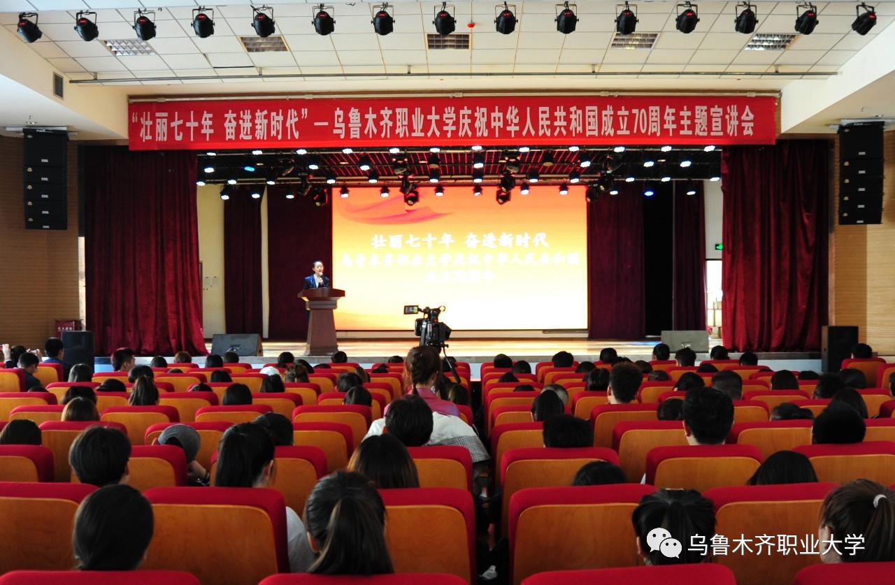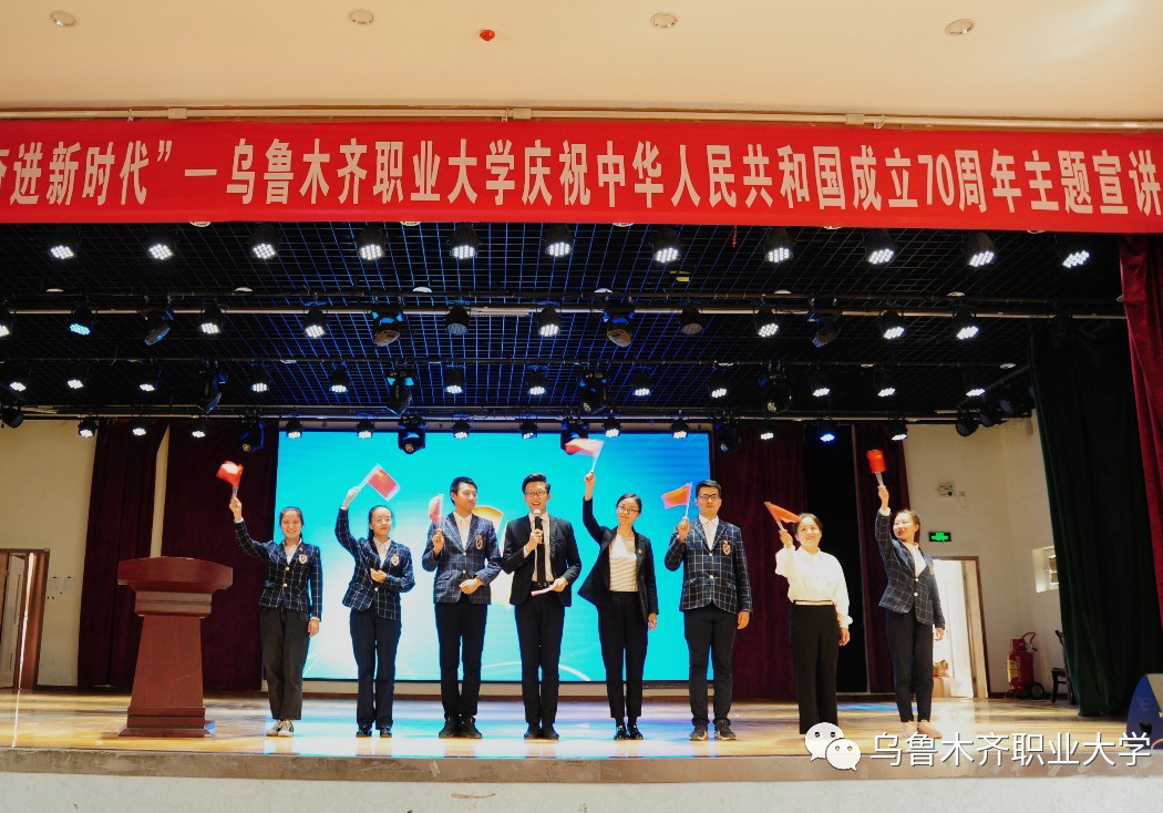 9月18日下午,“壮丽七十年 奋进新时代”庆祝中华人民共和国成立七十周年宣讲会在学校本部大礼堂举行,此次宣讲会由校党委宣传统战部主办,校团委、社会科学部、工商管理学院协办,乌鲁木齐职业大学宣讲站7名宣讲员为近400名学生作了精彩宣讲。