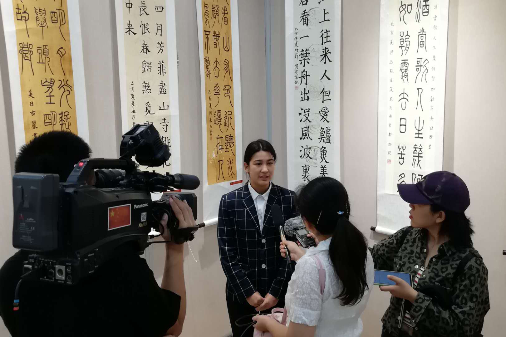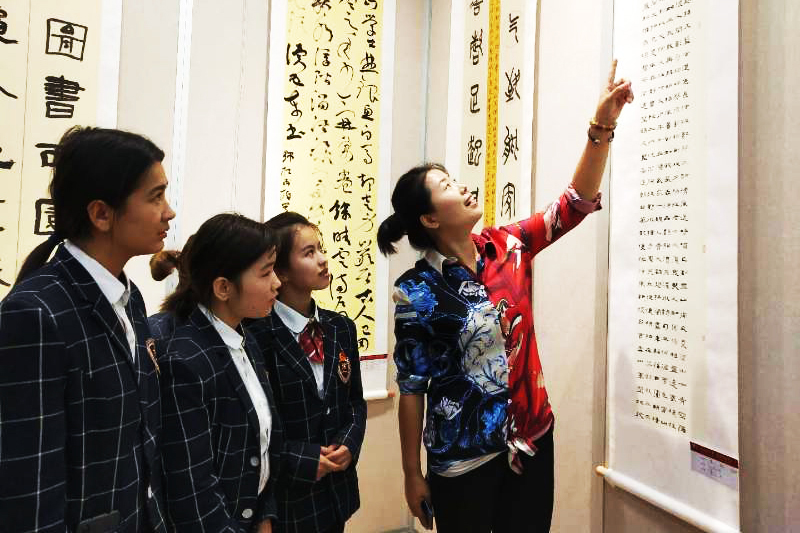 9月23日,迎着微曦的晨光,我校师范学院参观了《庆祝中华人民共和国成立70周年新疆书法篆刻展》,由师范学院曾轶老师组织带队,35名学生代表来到自治区文联展厅进行参观。