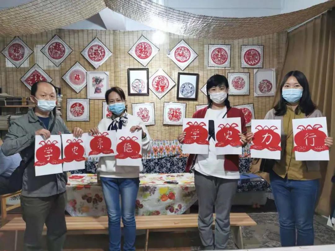 大家在自治区非物质文化遗产剪纸技艺传承人王革老师的现场指导下,一把剪刀,一张红纸,一双巧手,一幅幅“学史明理、学史增信、学史崇德、学史力行”剪纸作品跃然纸上。此次活动让大家感受到了初心与使命,让党史学习教育更接地气、添声色。