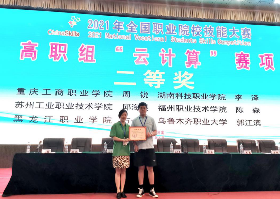 近日,全国职业院校技能大赛高职组“云计算”赛项比赛在山东商业职业技术学院成功举办,我校信息工程学院赵静老师指导的计算机网络技术专业1903班学生郭江滨,与来自全国31所高职院校的参赛选手同台竞技,经过3天的激烈角逐,最终荣获全国职业院校技能大赛高职组“云计算”赛项二等奖。