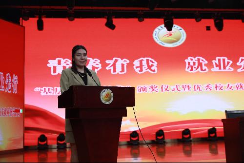 韩丽梅,是一名南疆基层公务员,曾连续两年被自治区党委、自治区人民政府评为“访惠聚”驻村先进工作者,2018年被克州党委组织部评为优秀公务员,2020-2022年连续三年考核优秀授予三等功荣誉称号。她作了《以青春之我 担时代之责 缘起西部计划 扎根奉献边疆》的精彩演讲,详细描述了基层就业的艰辛与磨练,鼓励全体在校生牢记习近平总书记的殷殷嘱托,扎根基层,在建设基层的岗位上发光发热,为祖国西部建设贡献自己的青春力量。